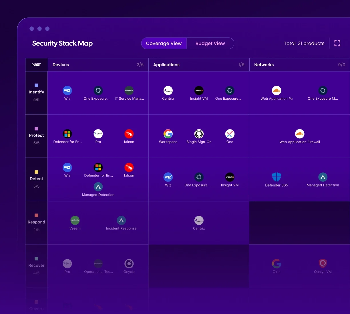 Our Security Stack Map (SSM), makes it easy for you to identify gaps, overlaps, and redundancies in tool coverage, adhere to compliance frameworks, and make your tech stack as efficient and effective as possible.