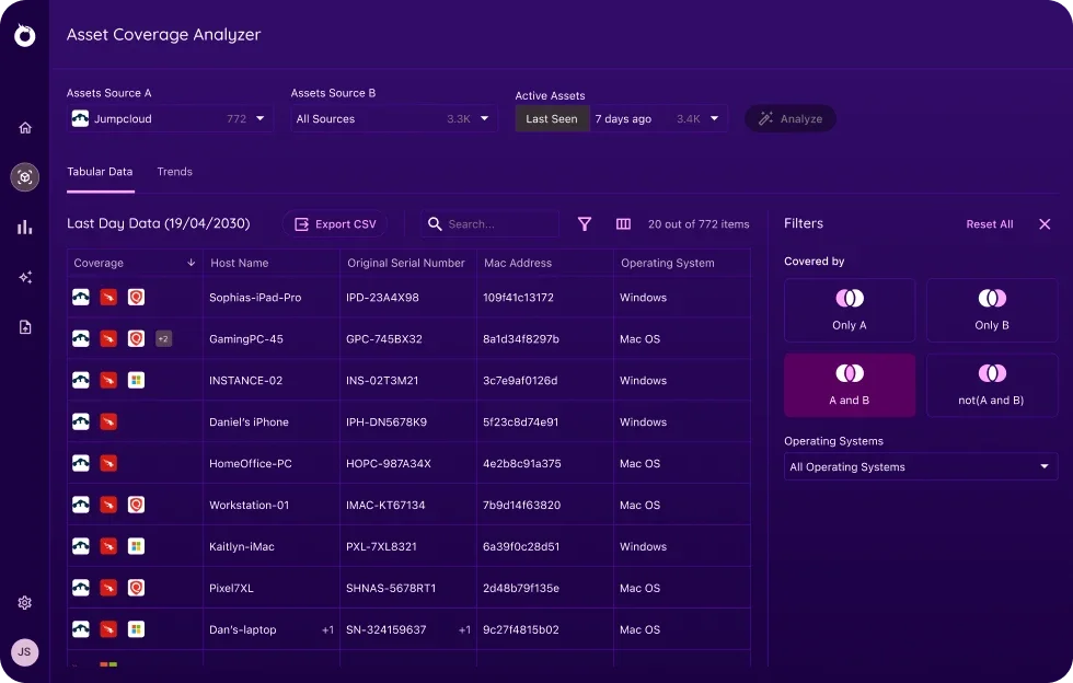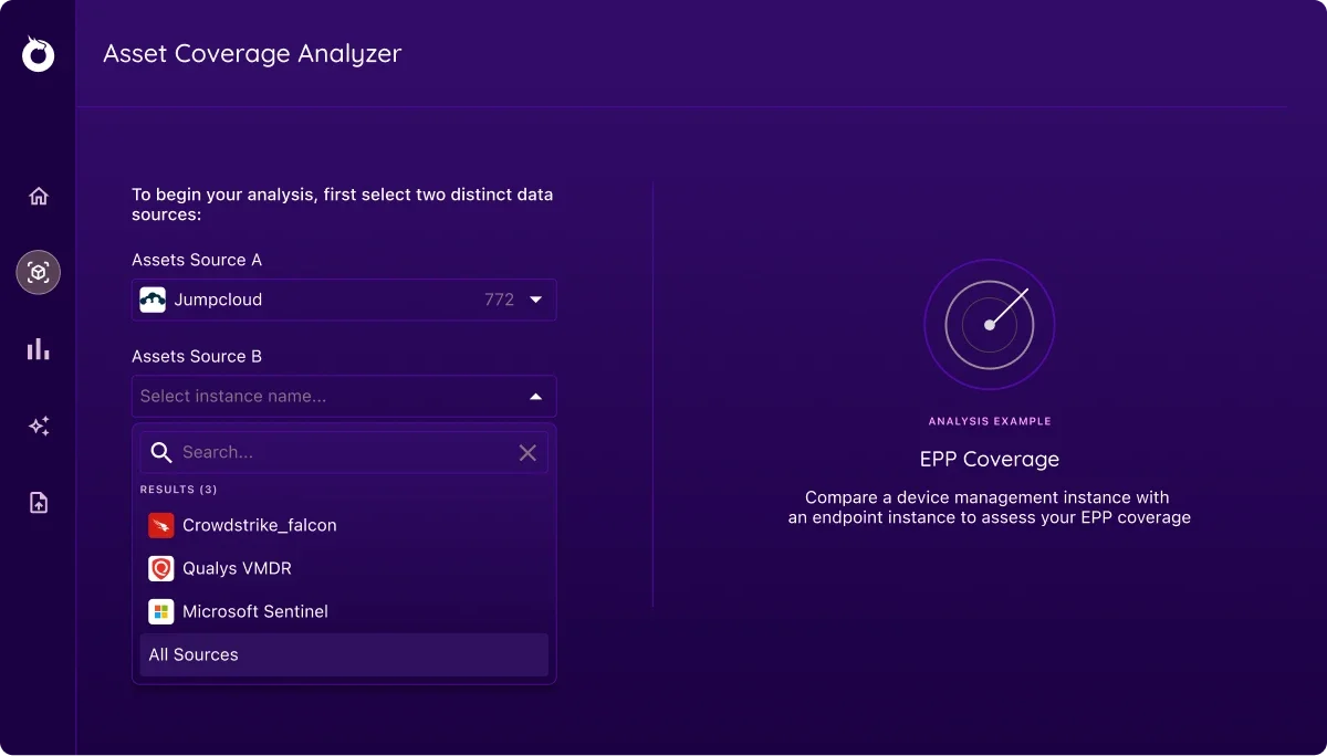 With Onyxia’s Asset Coverage Analyzer, you can instantly compare device coverage between your security solutions and measure how many devices require your team's attention.