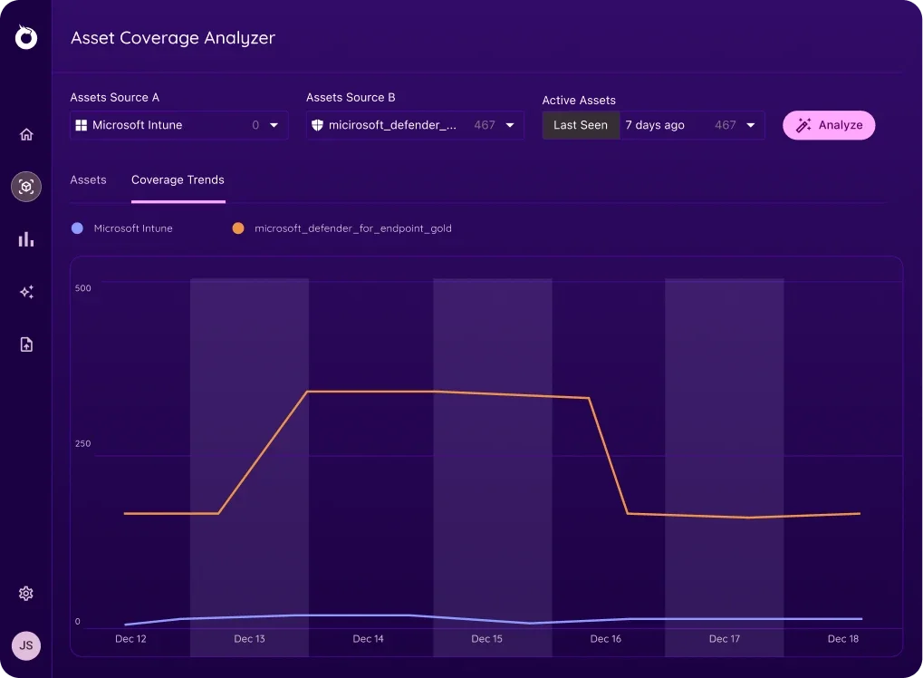 Using the Asset Coverage Analyzer, track that your security program remains compliant with your organizational goals and SLAs.